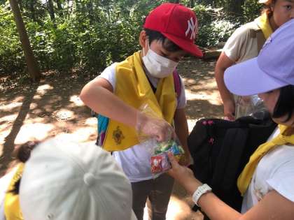 途中の東屋のあたりで「キャンディータイム」です。班長さんがみんなに配っています。みんな笑顔です。元気が戻ってきました。