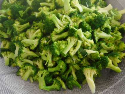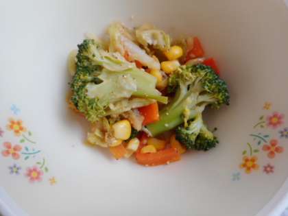 給食では八王子産野菜をたくさん使用しています。スパゲティーには「八王子産大根」を使いましたが、ボイル野菜のごまドレッシングに使った「ブロッコリ−」「キャベツ」も八王子産です。ブロッコリーは茎まで立派で、茎は廃棄する部分ととらえがちですが、調理員さんが茎の部分もきれいに切ってくださり、サラダの一部となりました。