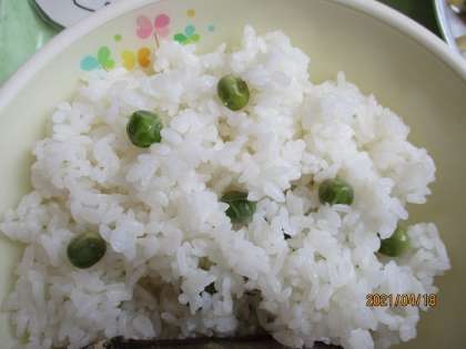 グリーンピースは「えんどう豆」の若い実で、さやから出して食べます。春から初夏にかけてが旬です。さやから出したばかりの新鮮なグリーンピースは香りがよく、ほのかに甘みがあります。苦手な子も多いグリーンピースですが、教室では、それでもなんとか一口は食べよう、できるかぎり食べようとする姿がみられました。