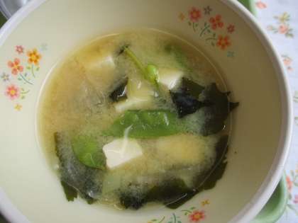 さやえんどうの旬はまさに今。みそ汁に入れて、いただきました。