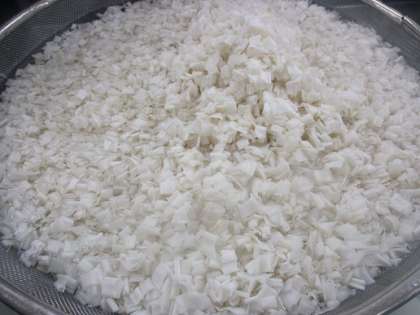 ツナそぼろちらしには、たっぷりのツナとかんぴょうを使って作りました。煮汁を作り、よく煮含めます。