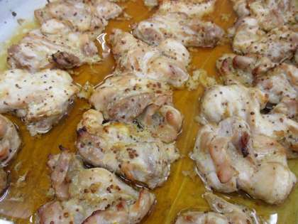 鉄板に並べてオーブンでこんがり焼いたら出来上がりです。マスタードを使いましたが、全く辛くなく、マスタードや辛いものが苦手な子でもおいしく食べることができるチキンです。はちみつが絶妙な甘さを加えてくれたおかげです。