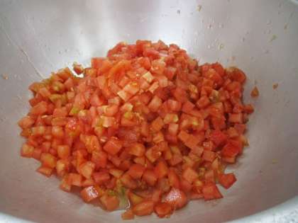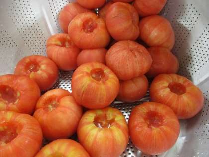 八王子市の小比企町、長沼町、石川町で作られたトマトです。皮を湯むきして、細かく切ります。今日のスープのだしは「けずりぶし」です。