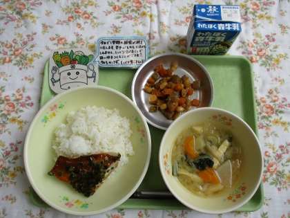 20日の給食はごはん、赤魚の薬味焼き、五目煮豆、はっちくんのみそ汁、牛乳です。赤魚は調味料とこねぎで下味をつけておきますが、焼くときにできる限りこねぎを魚にのせるようにして焼きます。ごはんも進みます。この日で1学期の給食が終了しました。好きなものはもちろん、苦手なものも出たかもしれません。七国小学校はとても大きな学校なので、作る量がとても多いです。全校児童のみなさんが少しずつ残したとしたら、その少しが約900倍残ることになります。無理は決してしなくて良いのですが、「食べられるけどもういいや」と言って一学期残してしまったとしたら二学期がんばって残さず食べてみましょう。