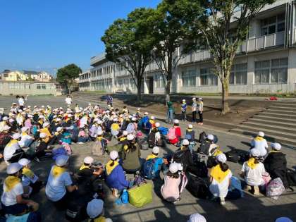 6年生は今日から2泊3日で日光林間学校を実施します。校庭での出発式の後、4台のバスに乗り込みました。3クラスで4台のバス利用なので、各クラスを4分割にしています。バスレクの係は「みんなが笑顔で楽しめるバスレクにしよう」とめあてをもっています。高速に上がったらバスレクを開始する予定です。