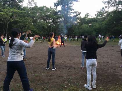 続いては、みんな大好き「南の島のハメハメハ」です。なんとも可愛らしくユーモラスな踊りなのでみんな爆笑しながら大いに楽しみました。特にフラダンスシーンはどの子も笑いが止まらないようすでした。