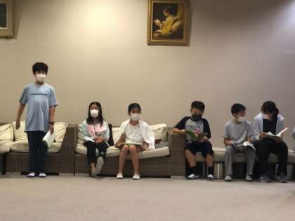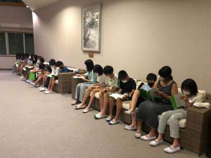 3階ロビーで班長・室長会議を行なっています。今日の振り返りと明日の見通しを確認しています。班長・室長は「お互い協力し合って安心して過ごせる日光にする」というめあてをもっています。諸連絡や諸注意をしっかりメモをとっていました。