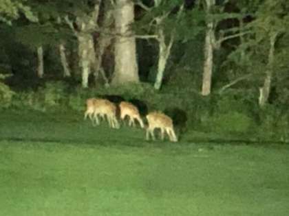 「鹿がいます!」と子供たちが教えてくれました。3枚目の写真は宿舎の中庭のようすです。鹿が3頭、食事中のようでした。
