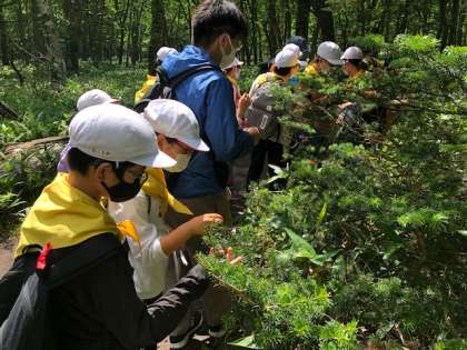 1枚目の写真はウラジロモミを教わって実際に触って感触や葉裏の色合いを確かめているようすです。