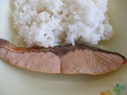 給食では鮭を焼き、上から酒・しょうゆ・みりんで作った特製しょうゆダレをかけました。辛くなりすぎないように調節して仕上げています。