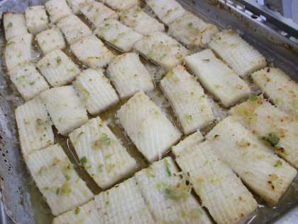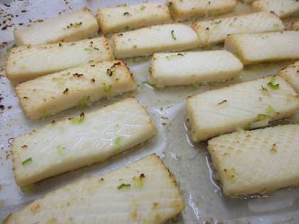 徳島県のアオリイカは透明感とおいしさのため人気があり、出荷量も全国トップクラスです。給食では「いか」を使って「いかのねぎ塩焼き」を作りました。