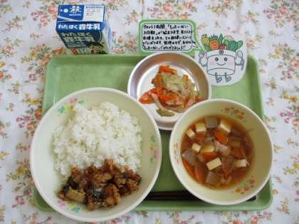 16日の給食は、ごはん、さんまのかばやき風、けんちん汁、キャベツの梅和え、牛乳です。今が旬の「さんま」を食べます。さんまは、冬から春にかけて北の海へ、夏から秋にかけて、南の海に移動します。さんまの旬は、夏から秋。脂がのって一番おいしいです。