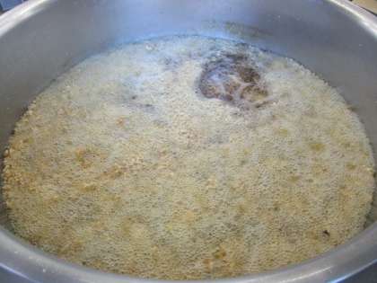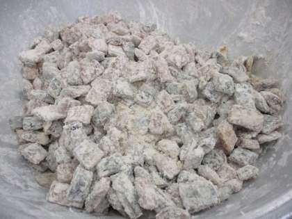 旬のさんま40キログラムを使って、「さんまのかばやき風」を作りました。さんまの短冊切りに根しょうが・酒・しょうゆで下味をつけ、片栗粉をまぶして油でカリッと揚げます。