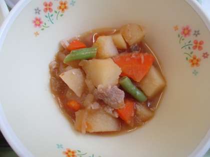 「カムジャタン」は、朝鮮半島の鍋料理の一つで、「カムジャ」がじゃがいも、「タン」がスープという意味なので、直訳すると「じゃがいものスープ」となります。しかし、「じゃがいものスープ」には「カムジャクク」という名前があるため、「カムジャタン」は「豚の背骨とじゃがいもを煮込んだ鍋」を示すそうです。給食ではアレンジして、「ピリカラ肉じゃが」を作りました。どちらにも唐辛子を使った調味料「豆板醤」が使われているため、体を内側から温めてくれます。