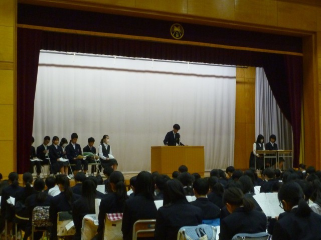 今月より後期の委員会が始まったことを受け、生徒総会が行われました。