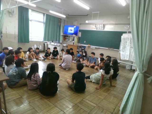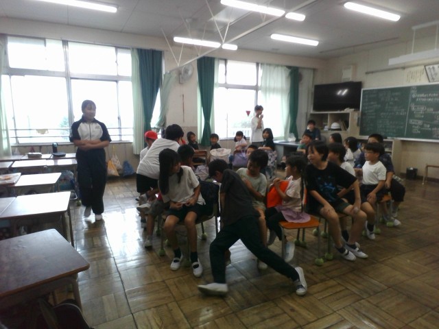 今日は1組グループは校庭、2組グループは教室で活動しました。