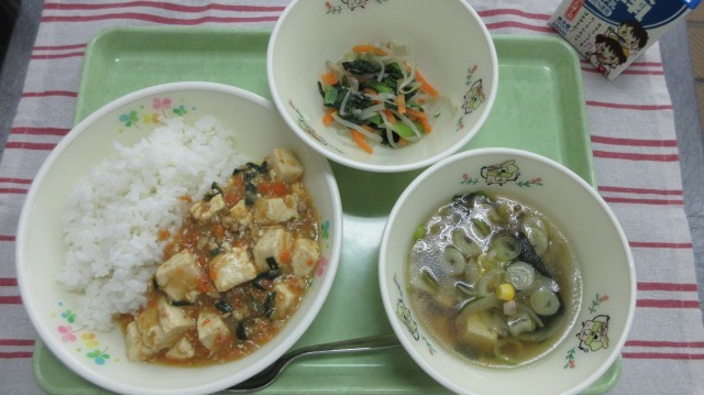 今日は「おとうふ2ちょう」という絵本とのコラボ給食でした。