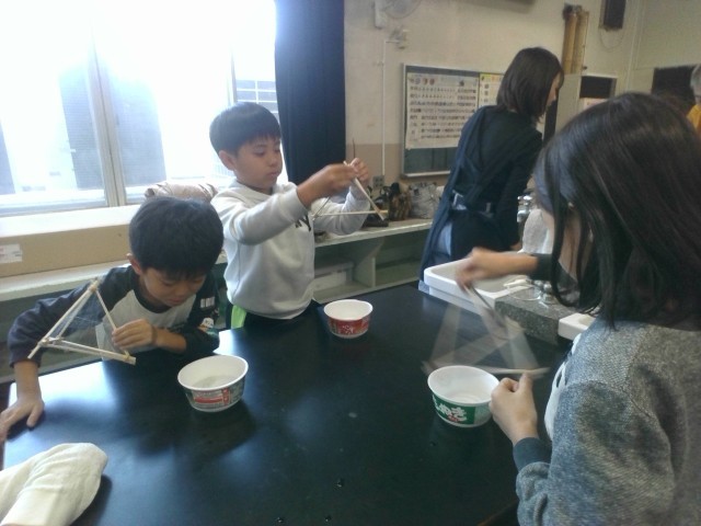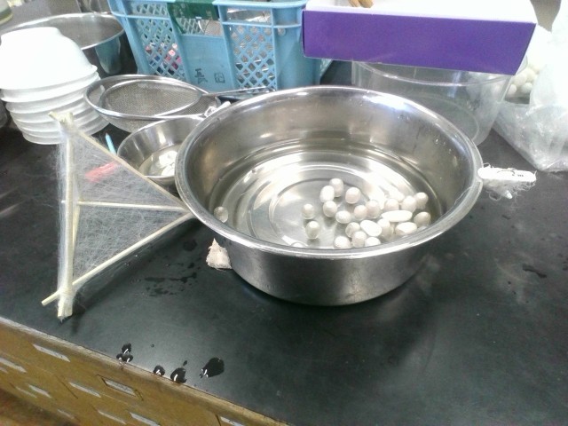 今日はゲストティーチャーをお迎えし、蚕の繭から糸を取り出す糸くり体験をしました。1学期から蚕に桑の葉をあげ、育ててきただけに、子どもたちも目を輝かせて取り組んでいました。