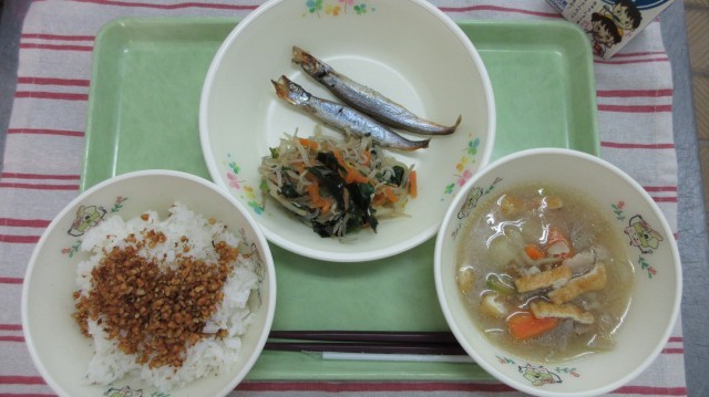 今日はカルシウムたっぷりで、よく噛んで歯にいい献立でした。