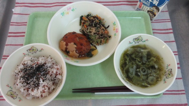天狗ごはん:赤米でごはんをほんのり色付けし、天狗の帽子を黒ごまで表しました。