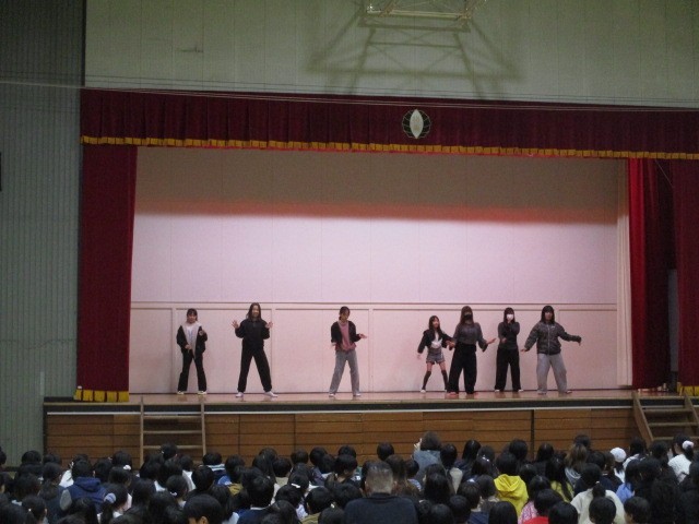 大勢の友達が見に来てくれました。手拍子をしながら体育館全体が盛り上がりました。