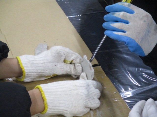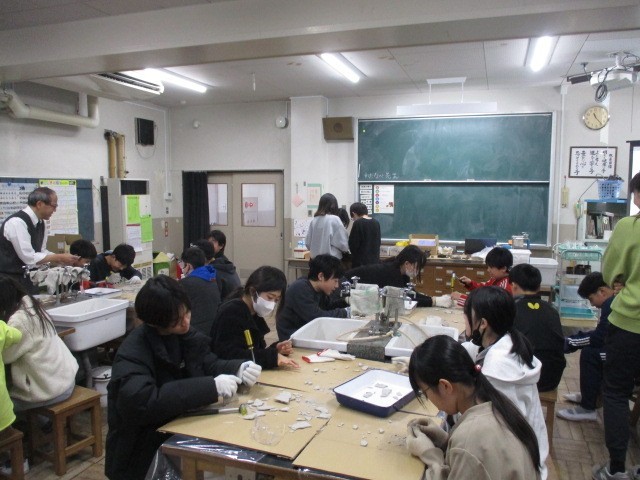 6年生は各クラス2時間ずつ、理科室で化石探しをしました。