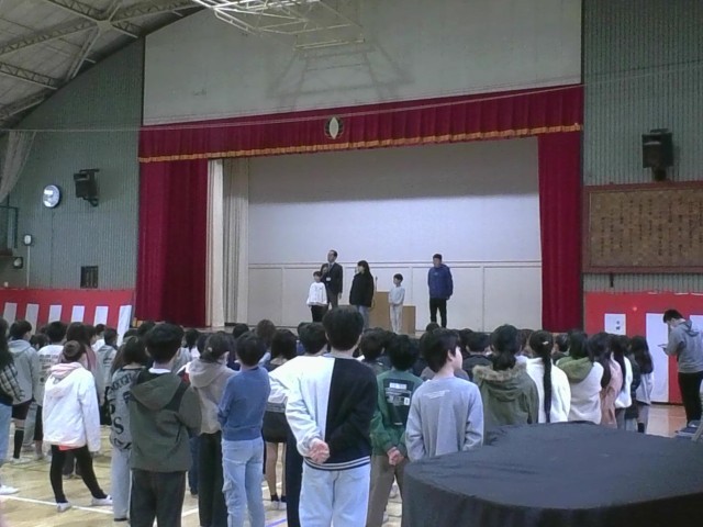 校長先生から、残りの短い期間を大切にしていくことや、年度末でお別れする先生の紹介がありました。また、表彰もありました。