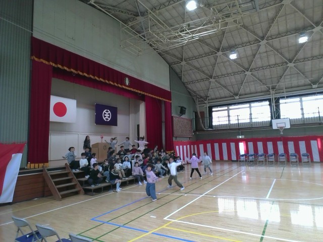 1年生は、新2年生として、今度の入学式で歓迎の出し物を披露します。その最終の練習を行いました。