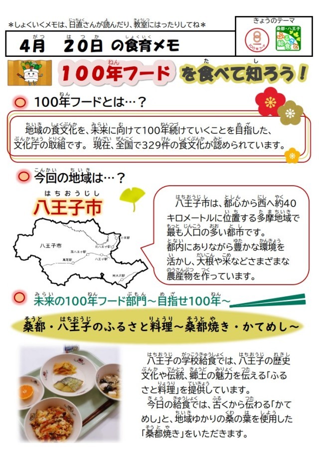 ※今日は、八王子に古くから伝わる「かてめし」と、桑の葉パウダーを
