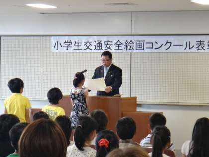 6月7日(日)に、小学校交通安全絵画コンクールの表彰式が八王子市役所で行われました。
