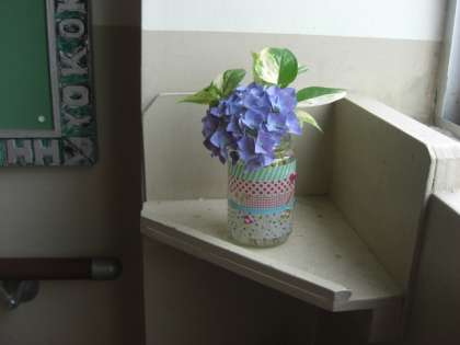 毎週水曜日に、お花ボランティアの方が来てくださり、階段や廊下に季節のお花を飾ってくれています。今日も紫陽花の花がありました。花一輪の美しさに、子供たちの心もきっと美しくなると思います。ありがとうございます。