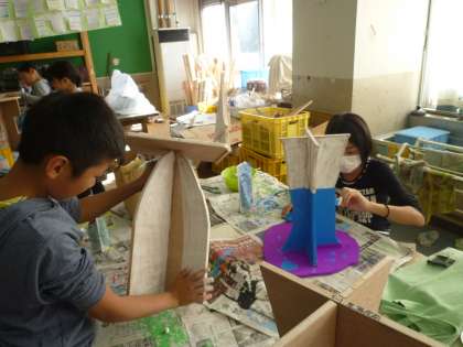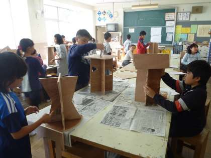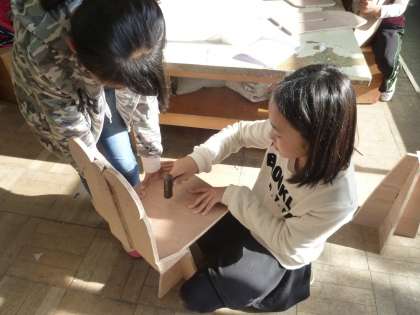 やすりで削ったり、ニスを塗ったりと集中して作業に取り組んでいます。