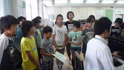 連合音楽会の合唱曲『今日から明日へ』の練習風景です。