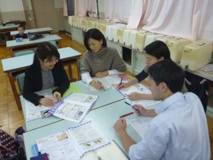 みんなが楽しく活動できるように、保護者・教員・食育セミナーの方と一緒に活動内容を確認してます。