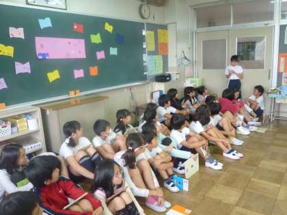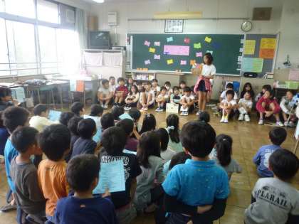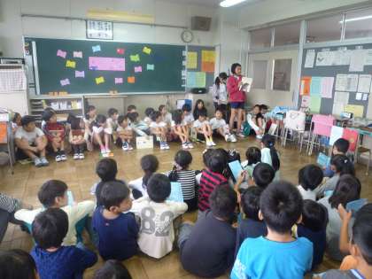 5年生の本の紹介を聞いて、「えーその話聞いてみたい!」「絶対いくー!」とワクワクしている2年生。