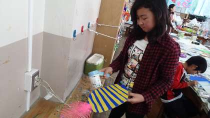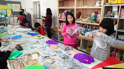 うちわの素材を生かして、魚を作りました。