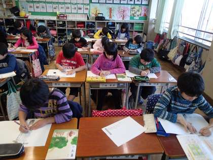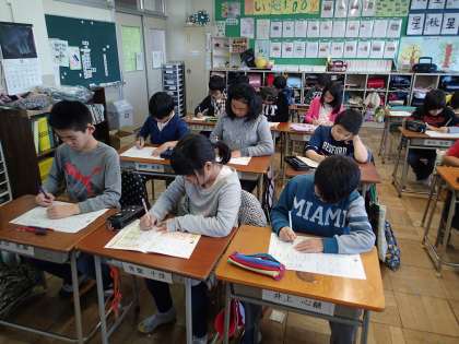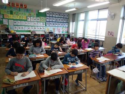 鉛筆の正しい持ち方や姿勢を確認した後に、俳句を視写します。