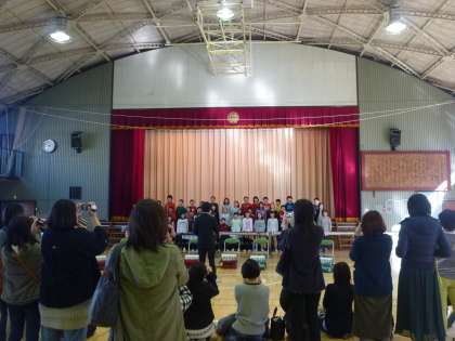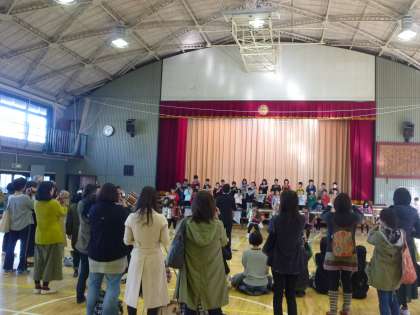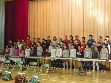 親子会では、先月の連合音楽会で披露した合唱と合奏を
