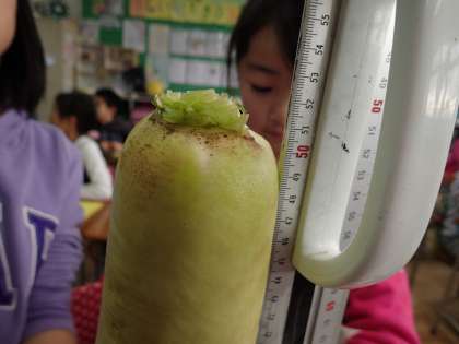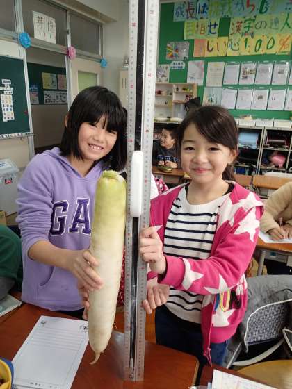 2組で収穫した最も大きい大根は52センチでした!