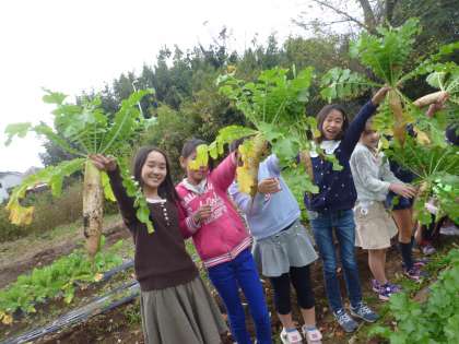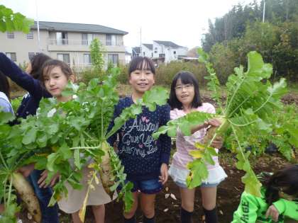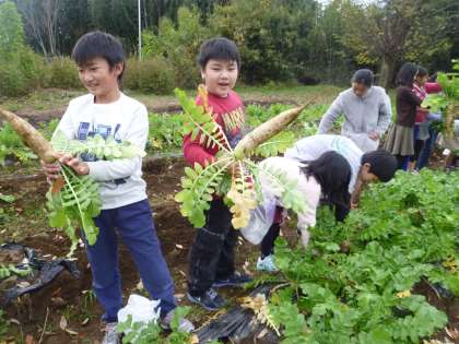 「あれ、なんか細い(笑)」などと言いながら、収穫を楽しんでいました。