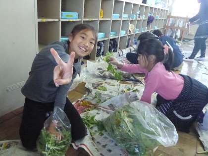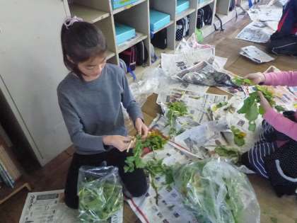 大根の葉の料理方法について知っている児童が、先生に色々教えてくれました。