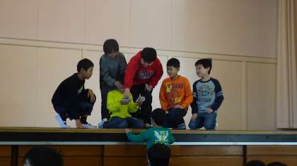見に来ていた1年生がゲストととして、手品に参加してくれました。