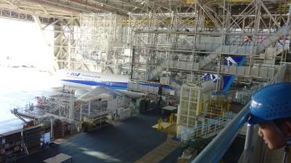 読売新聞東京本社の次は、ANA機体工場の見学に行きました。