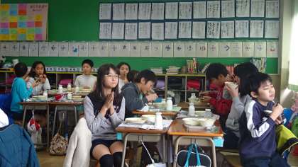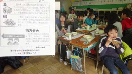 恵方巻だけでなく、牛乳を飲むときや豆を食べるときも南南東を向いている児童がいました。