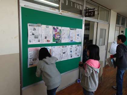 1月26日に社会科見学で学んだことを新聞にまとめ、廊下に掲示しています。