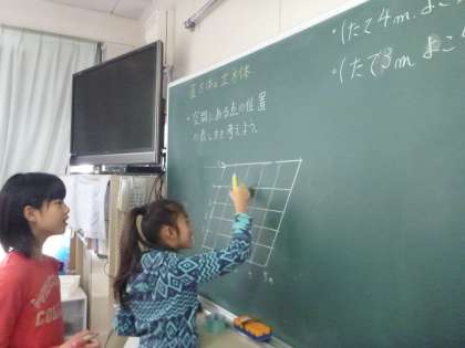 算数では、最後の単元である『立方体と直方体』の学習をしています。
