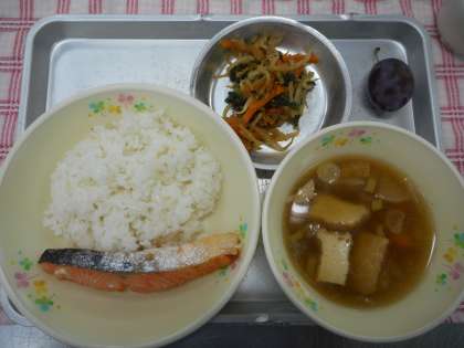 今日の和食はどれもよく食べていました。プルーンも甘くておいしく人気でした。今日初めて食べる児童もいて、どのように食べるかわからないと悩みながら口にプルーンをほおばる姿は貴重な一瞬でした。