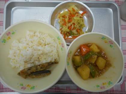 そのため、よく噛む献立にしました。五穀ご飯は、白米・玄米・もち米・米粒麦・きびを入れて歯ごたえと栄養価をアップしました。豆アジは頭つきでカリッと揚げました。
