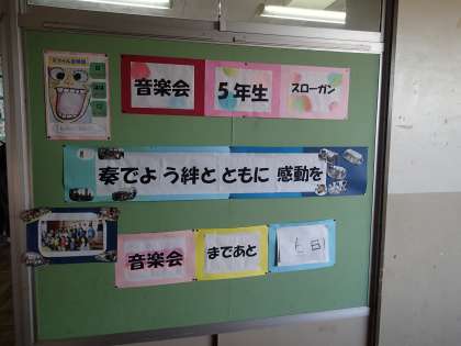 5年生の廊下掲示板には、練習の様子や実行委員からのアドバイスが掲示されています。