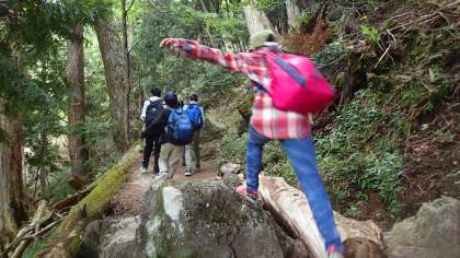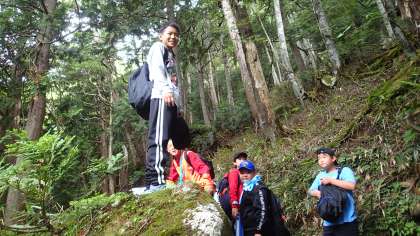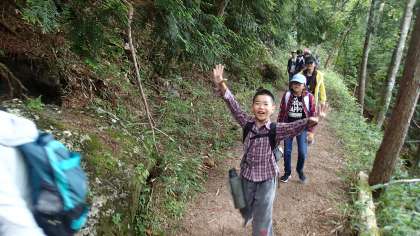 険しい道も、みんなで励まし合いながら、湖を目指して進んでいます。